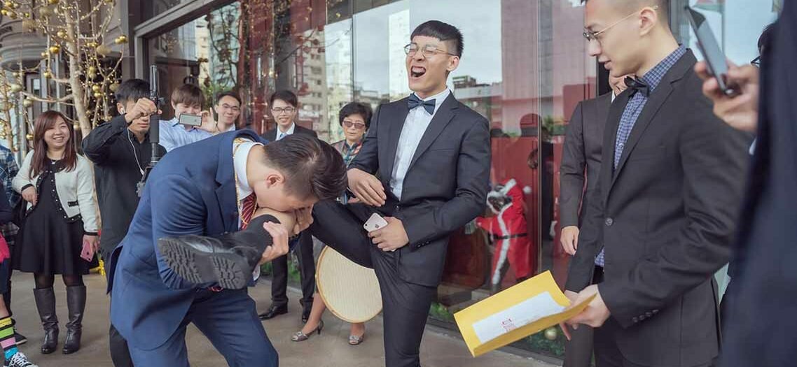 老實說這一趴也是我每次參加婚禮最期待的橋段,看到男生們被整都會跟新娘一起笑到歪腰 XD 不過這個橋段純粹就是好玩,大家千萬不要玩過火才不會影響婚禮流程喔!